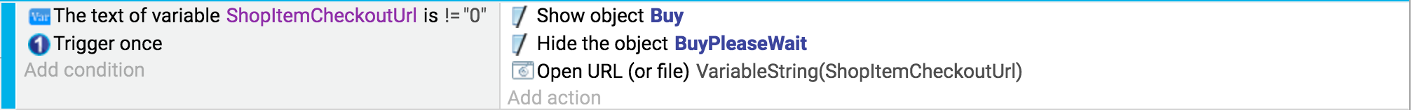 It's a good idea to display a text/loading indicator to the player to let them know that some work is being done, and disable/hide the button to buy. If the URL can't be generated (for example, if the user does not have an internet connection), the second variable will be set with the content of the error.
