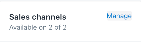 - Verify that your previously created private app is listed in the sales channels (click on manage if that's not the case):