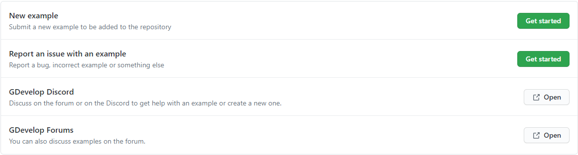 Submitting an example is a great way to contribute to GDevelop and help others. If your example is good enough, it will be accepted to the example library and will be available in GDevelop.