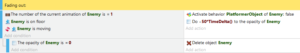 If an event does not have any conditions, the associated actions will run every frame of the game (usually 60 times per second).