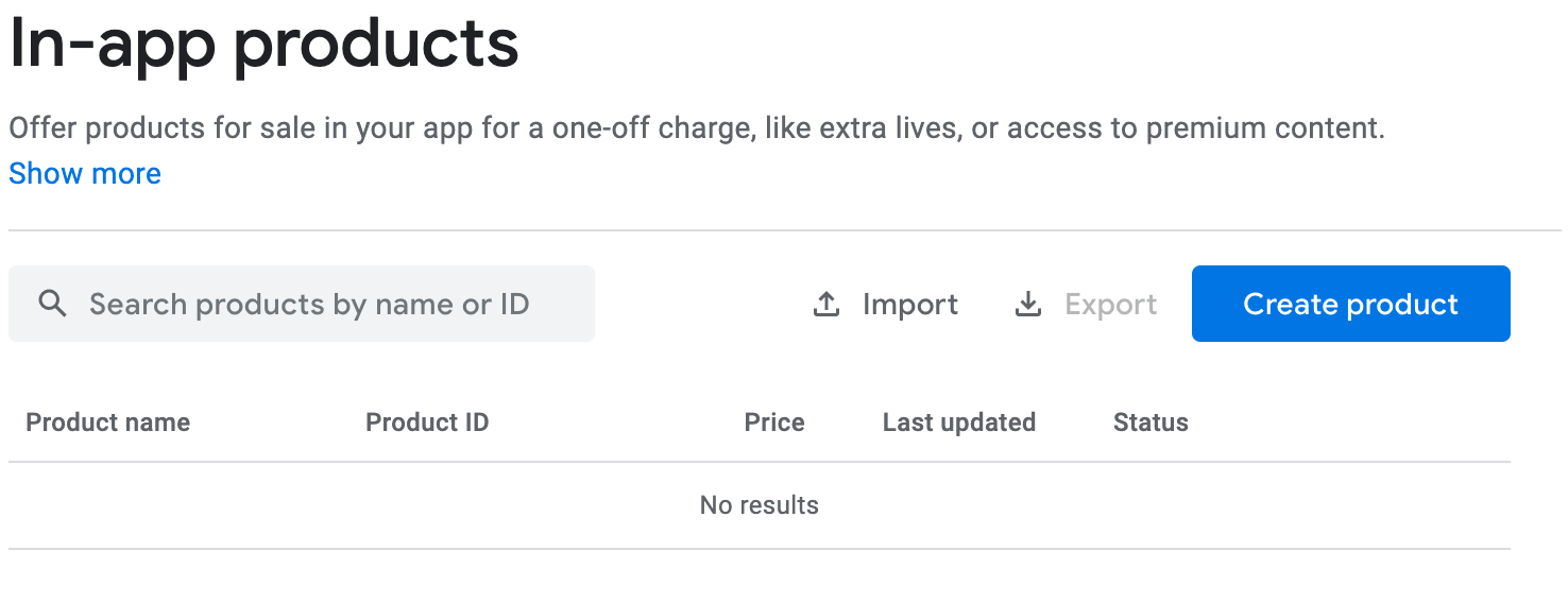 - Register your products on the Google Play Console or App Store Connect (see the rest of this page),
