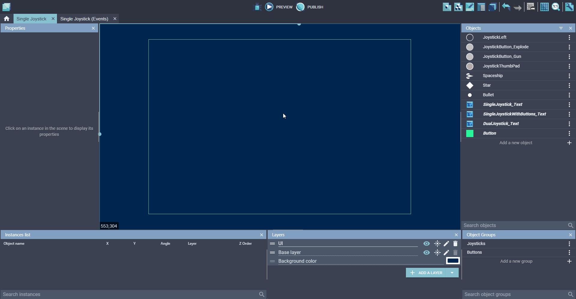 4) Add "Multitouch Joystick" behavior to the Joystick object.