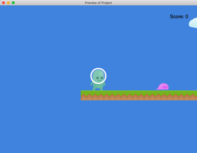 If a player jumps on an enemy, the enemy should die. Similar to the previous step, "death" in this case means deleting the "Slime" object.