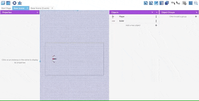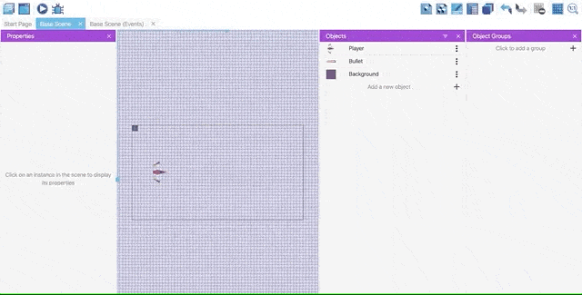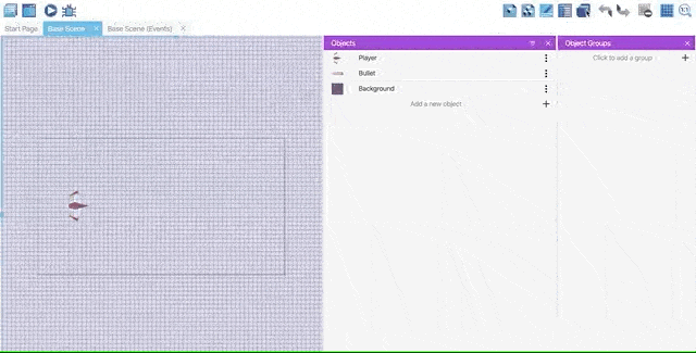 Open the properties panel from the upper right icons. Then, drag and drop the background object from the objects panel to our scene's upper left corner.