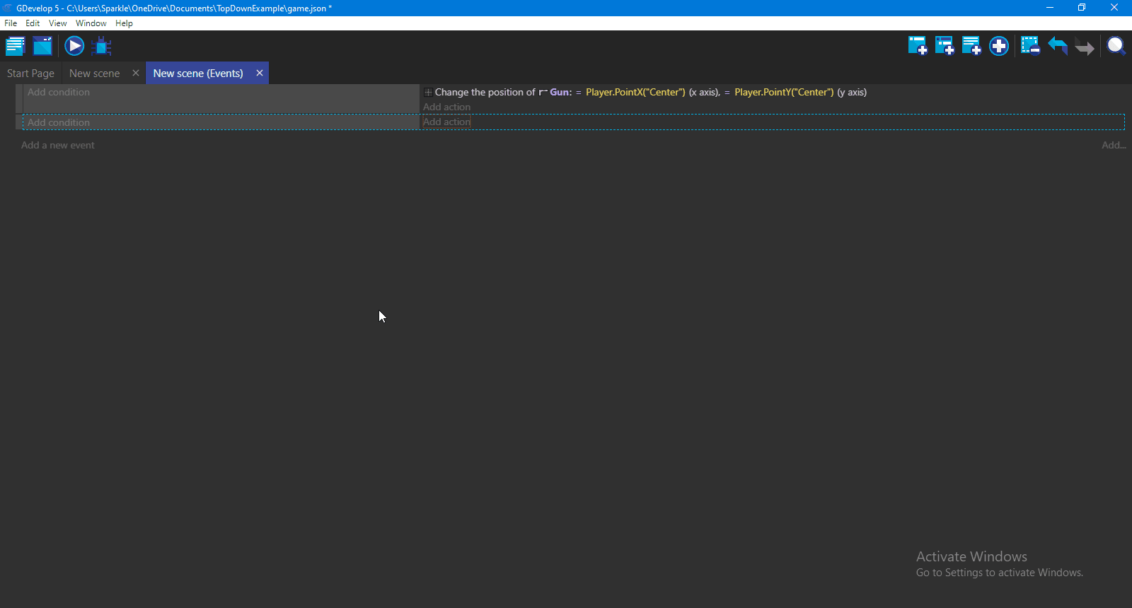 - Go to the Events tab of the scene