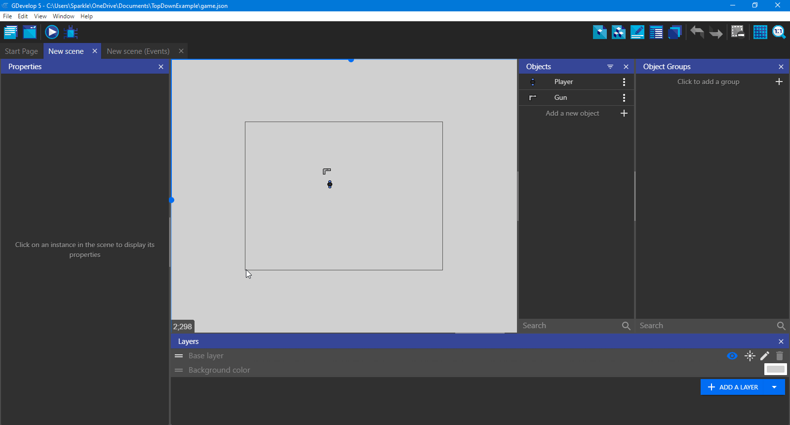 In Part 1, we made our Player and moved it. Today, we are going to make a Gun and aim it towards the mouse. We are also going to make a Camera follow our Player.
